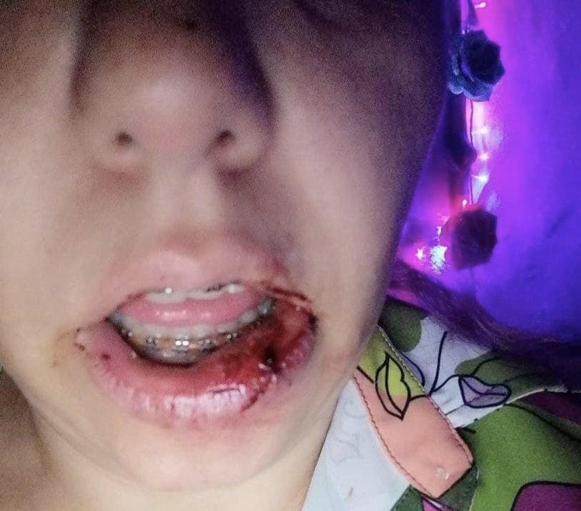 Nancy fue llevada al Centro de Salud donde fue valorada y donde fue necesario colocar varios puntos de sutura en su labio.