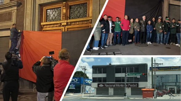 Al colocar las banderas rojinegras Arturo Zayún, secretario general del Sindicato del Monte de Piedad, dijo que “Hemos enfrentado un conflicto durante los últimos cinco años, originado por los intentos de liquidar el contrato colectivo de trabajo y despedir a los empleados”.