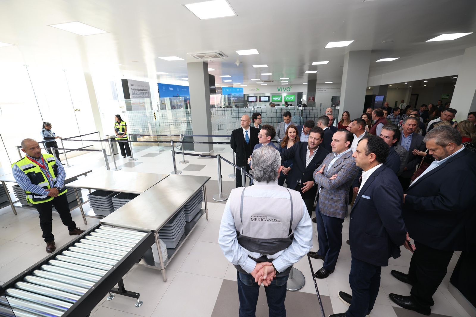 Acompañaron al gobernador en este evento, además, Paola Rodríguez López, presidenta honoraria de Inspira Coahuila; Luz Elena Morales Núñez, diputada presidenta de la Junta de Gobierno del Congreso del Estado; Tomás Gutiérrez Merino, alcalde de Ramos Arizpe; Javier Díaz González, alcalde de Saltillo; Javier Alonso Vega Dour, director general de Servicios a la Navegación en el Espacio Aéreo Mexicano; Javier Herrera García, director general de Aerus; Óscar Pérez Benavides, director general de Servicios Estatales Aeroportuarios.